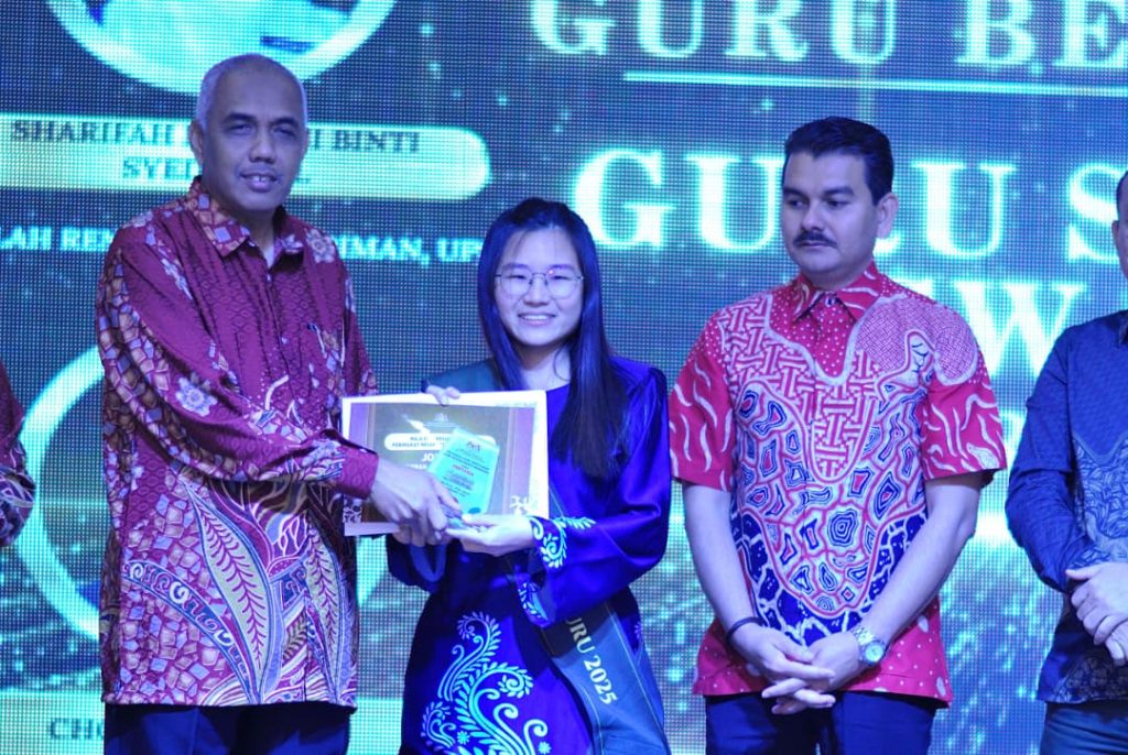 11月28日 卢嘉玲老师在2024 年【霹雳州教师表扬大会】(Majlis Apresiasi Guru Peringkat Negeri Perak)中,勇夺霹雳州私立学校卓越老师(Anugerah Guru Berwibawa Sekolah Swasta )季军