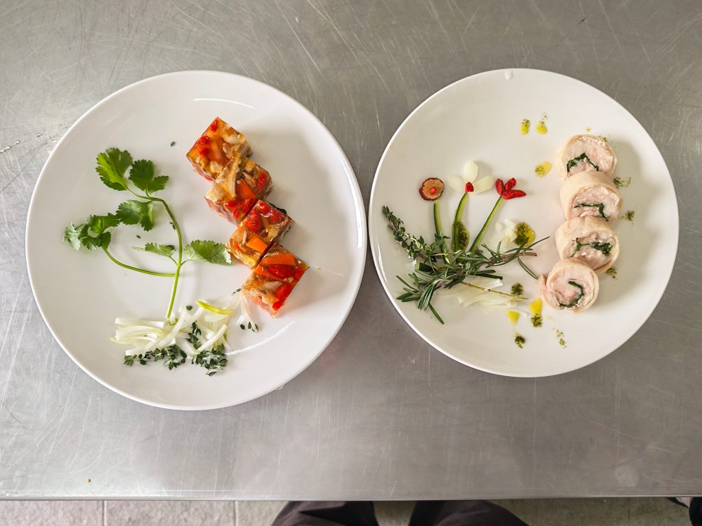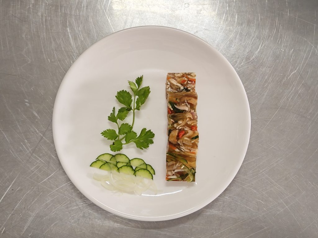 高中餐饮班正式进入西餐前菜单元,这次同学们挑战的是经典冷盘冻鸡肉卷与肉冻。