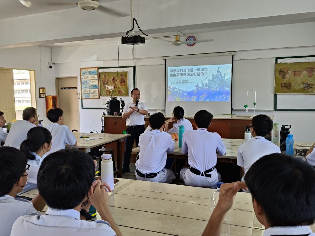 台湾慈济大学助理教授杨子庆再次莅临崇华独中,为高中理科班同学带来免疫学课程。