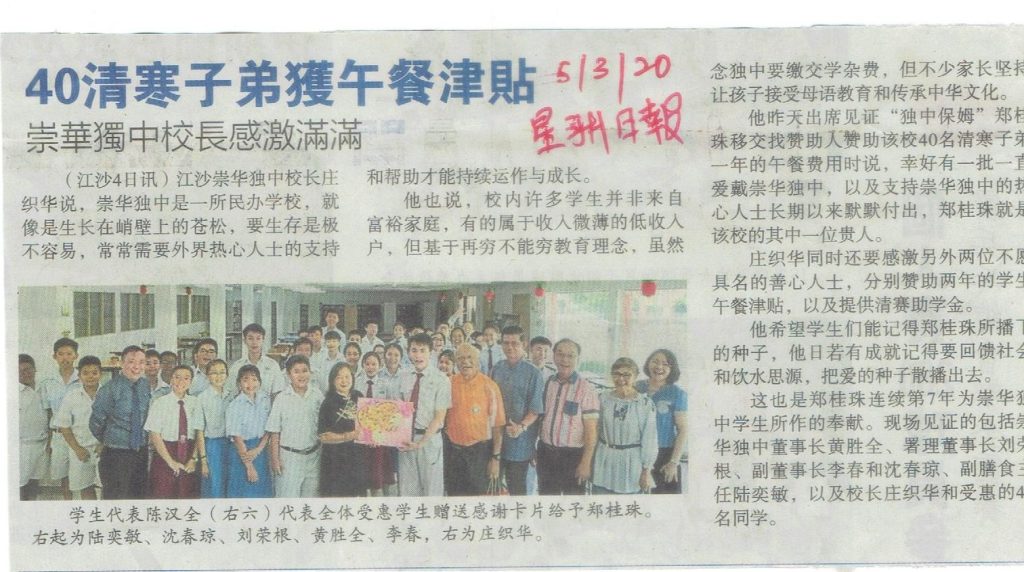 20 Jun 2020 | 【校园剪报】食堂暂不提供堂食 崇华缩短上课时间