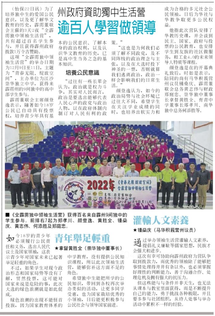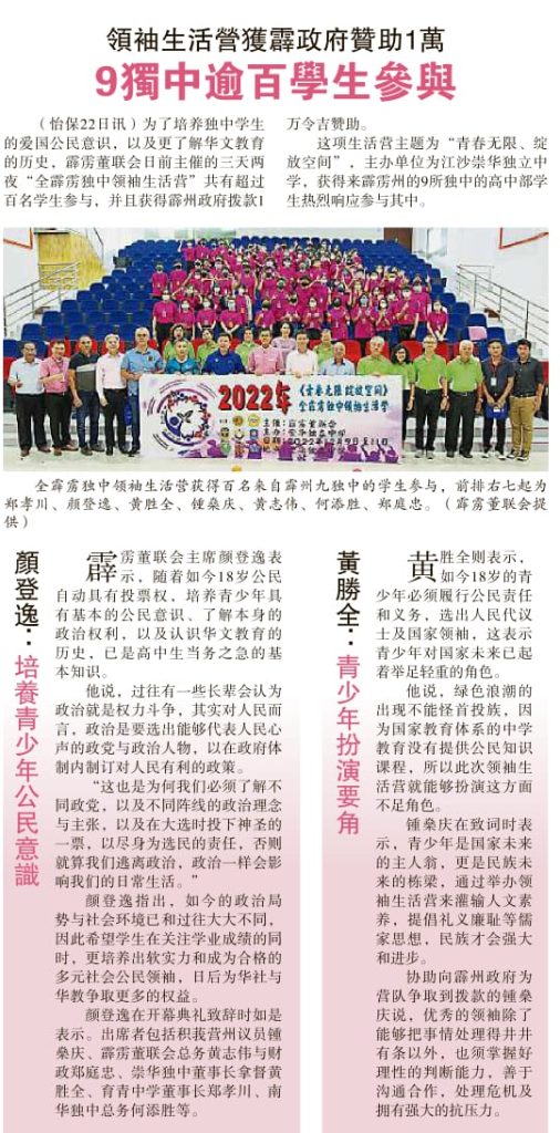 7 Dec 2022 | 【活动预告】2022年《青春无限 绽放空间》全霹雳独中领袖生活营