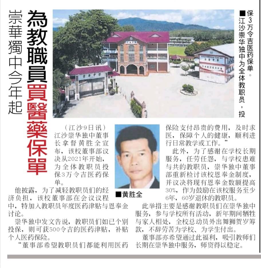 26 Apr 2021 | 【校园剪报】崇华独中吁师生家长减出席活动降风险