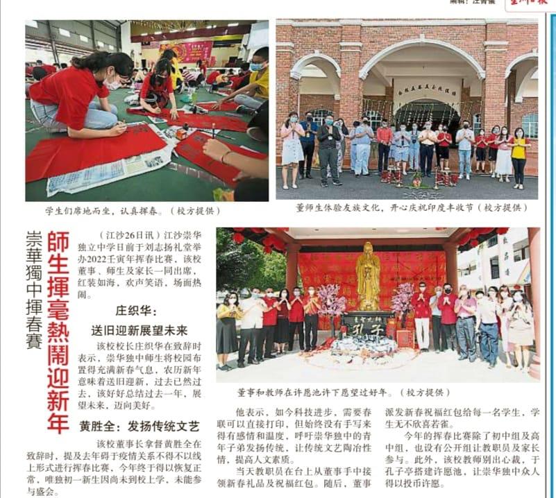 29 Jan 2022 | 【校园剪报】崇华纳福活动成绩斐然突破目标筹获42万
