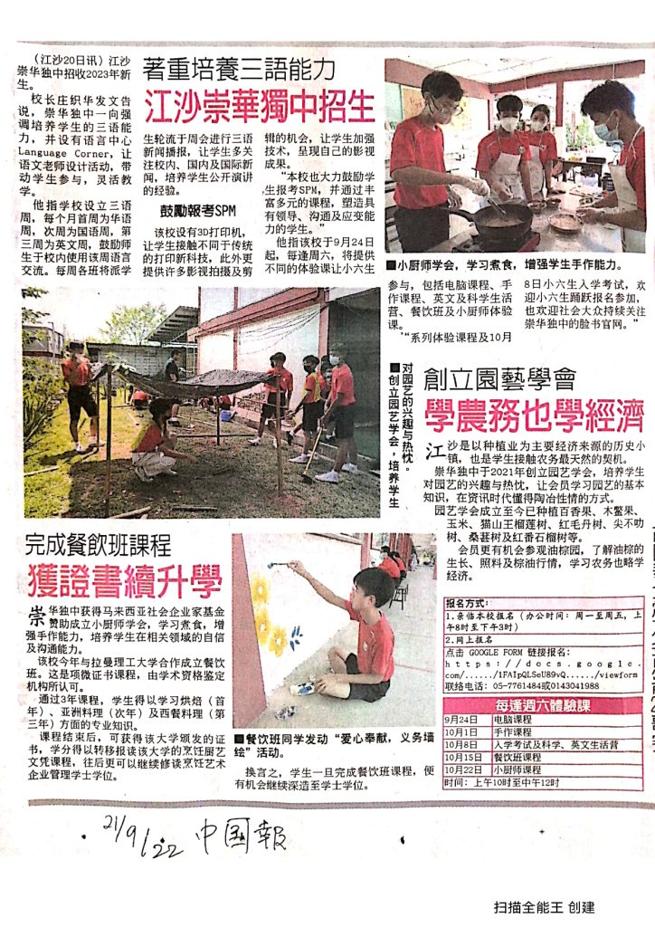 5 Nov 2022 | 【校园剪报】江沙明记饭店 明义卖捐独中