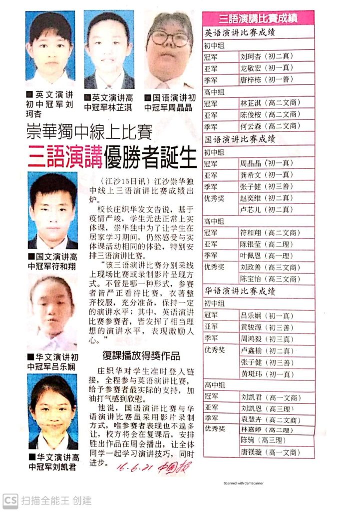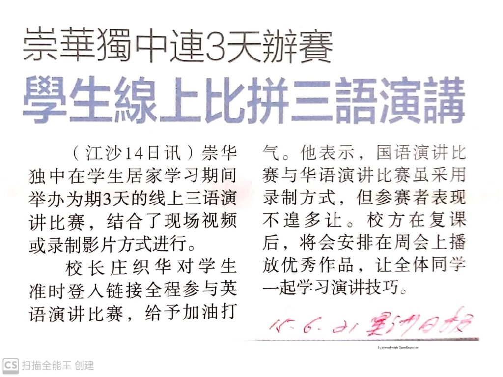 17 Jun 2021 | 【崇华独中有您真好】特别感谢 黃培德(2009年毕业)校友 义务为学校设计Logo, 感恩校友毕业在外依然心系母校