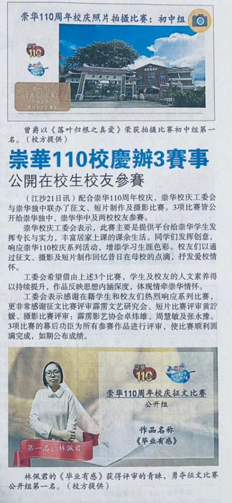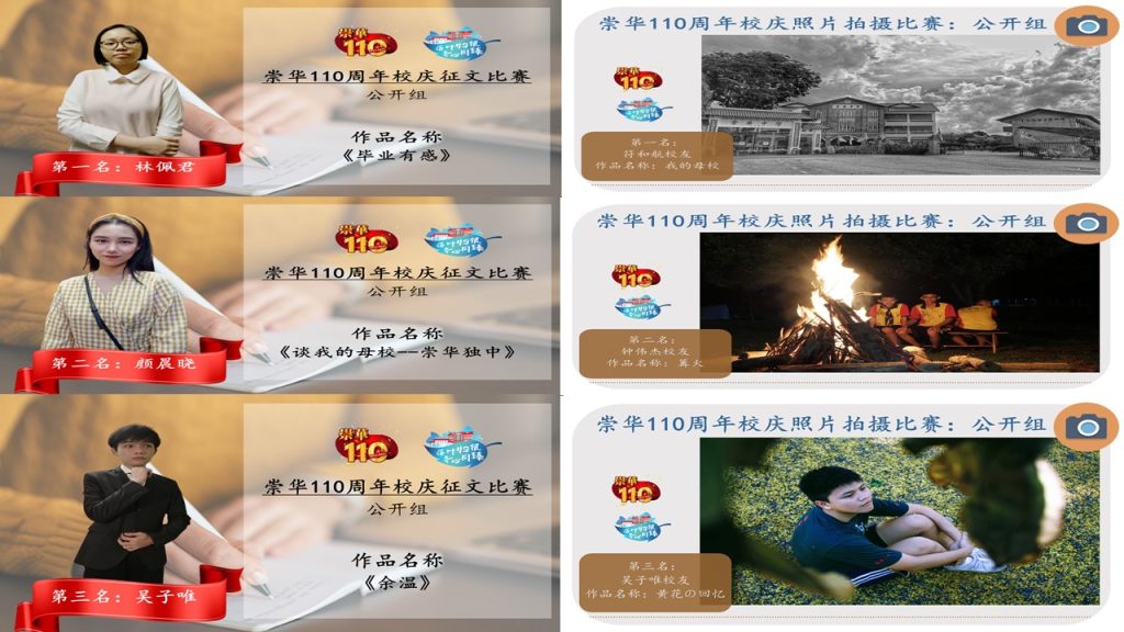 崇华110周年校庆征文比赛成绩及照片拍摄比赛成绩