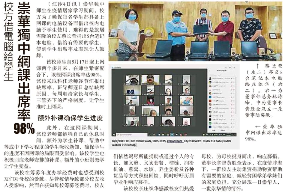 23 Aug 2021 | 【校园剪报】霹雳州政府拨款如及时雨