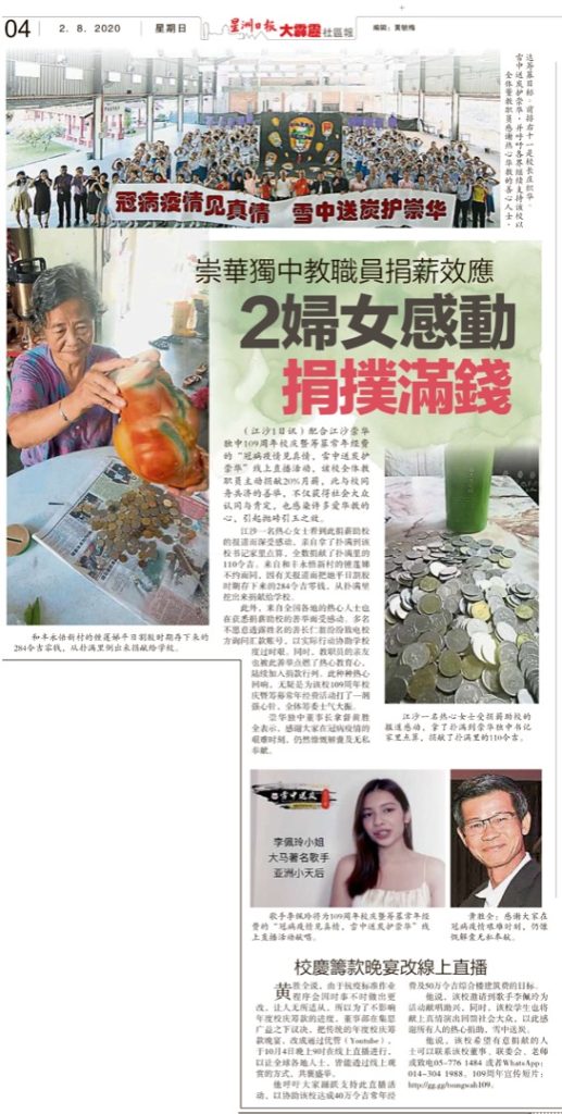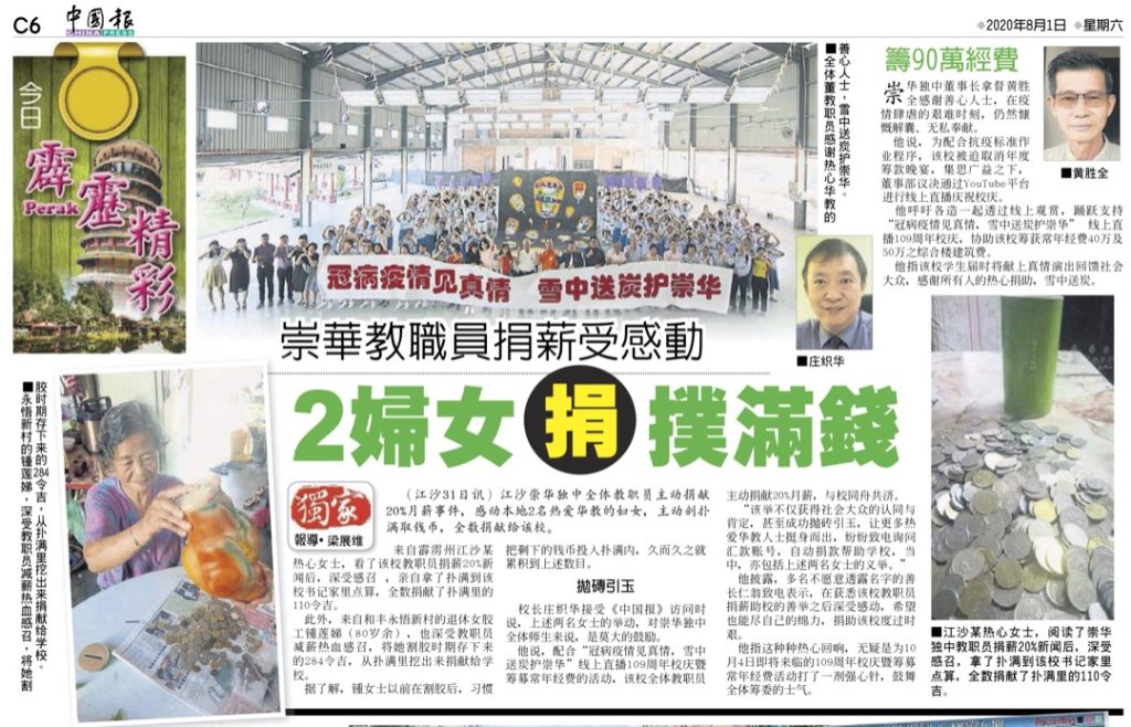 12 Aug 2020 | 【校园剪报】访宜力各华小会馆交流 崇华独中宣传109校庆