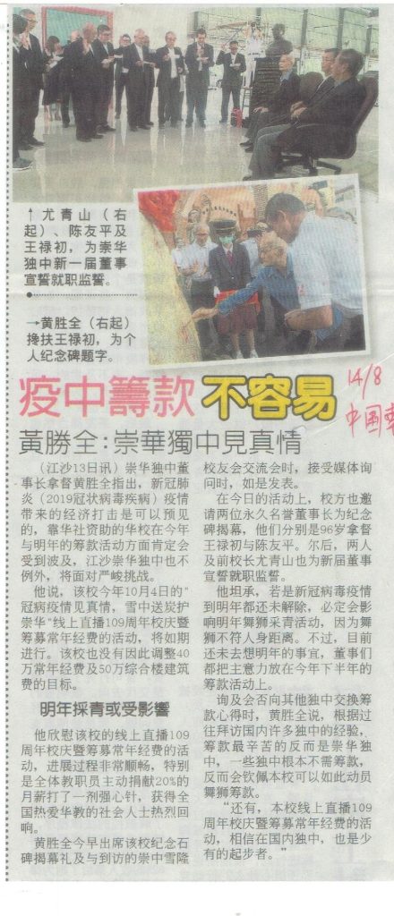 12 Aug 2020 | 【校园剪报】访宜力各华小会馆交流 崇华独中宣传109校庆
