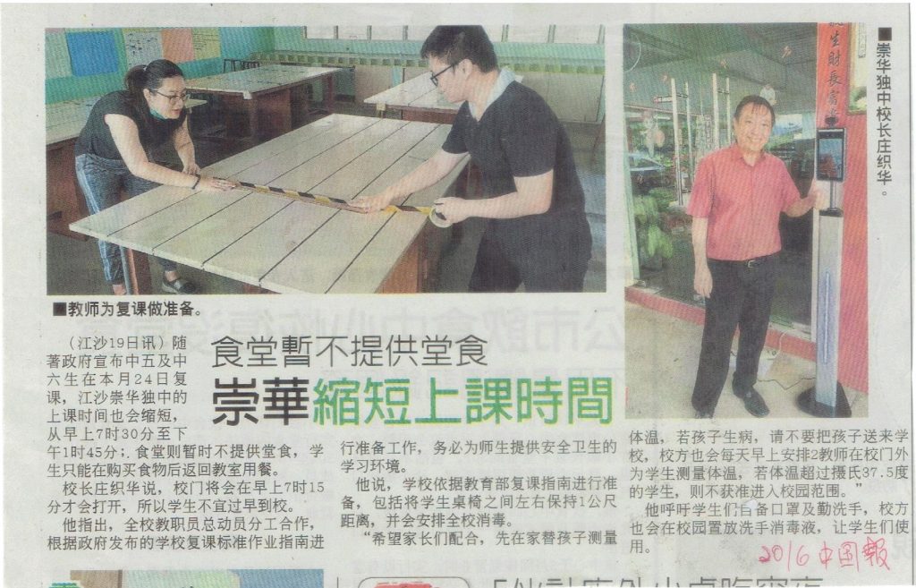 5 Mar 2020 | 【校园剪报】40位崇华独中学生获善心人士赞助午餐津贴 崇华独中校长感激满满