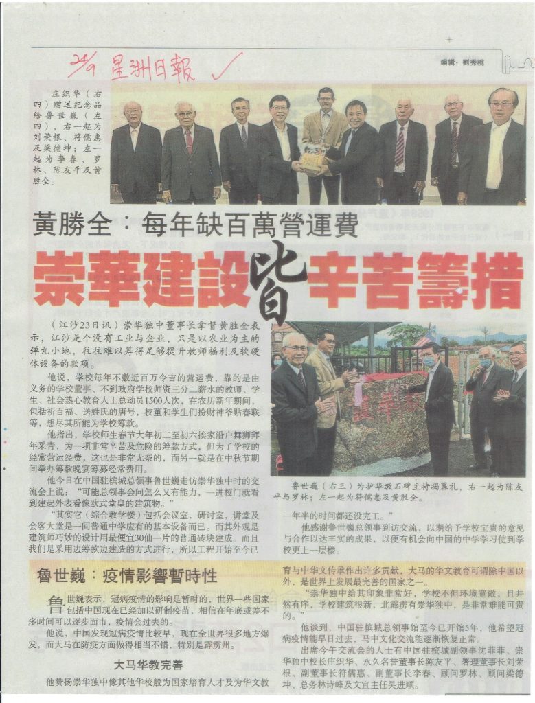 18 Sep 2020 | 【校园剪报】江沙华堂主席李春 认购89本书捐学府