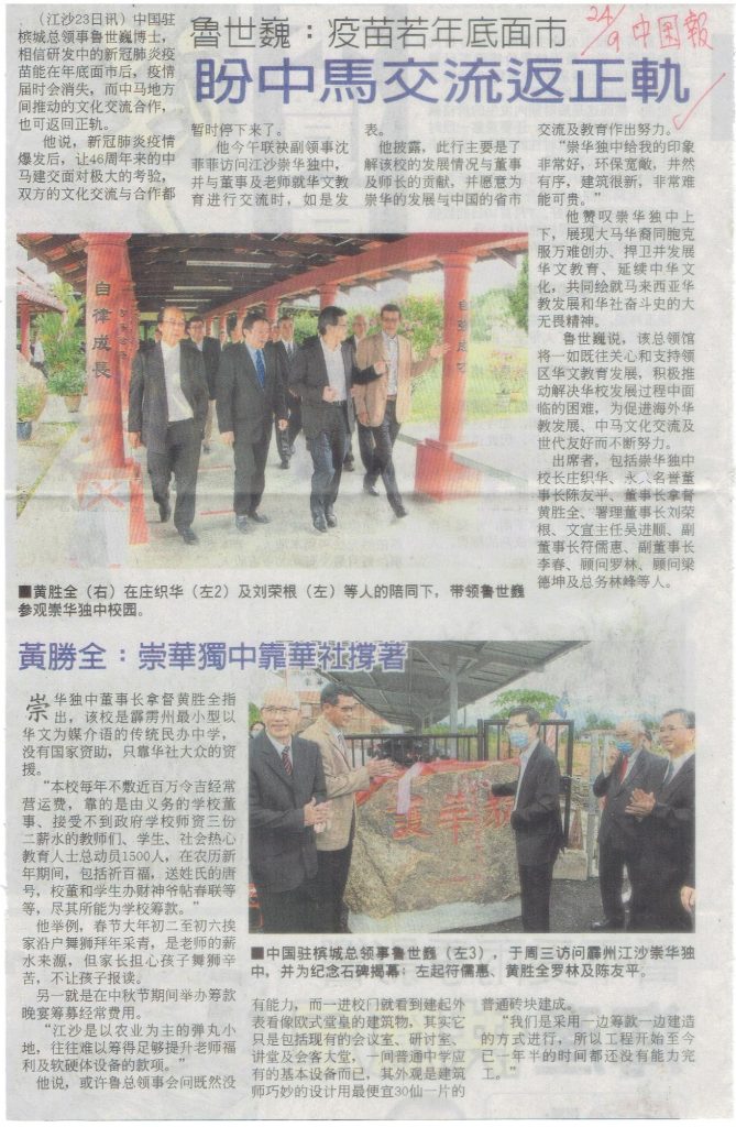 28 Sep 2020 | 崇华独中盼借人气提升名气 委校友黄康馨任宣传大使