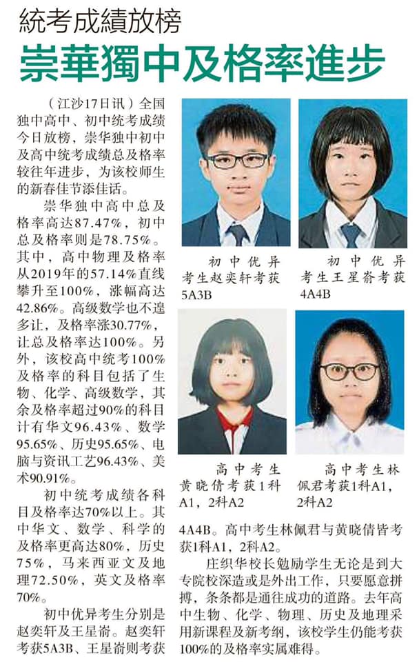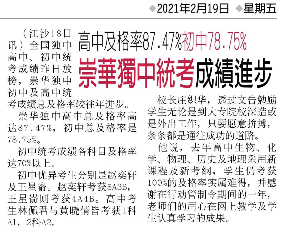 7 Feb 2021 | 【校园剪报】崇华独中线上挥春比赛顺利举行
