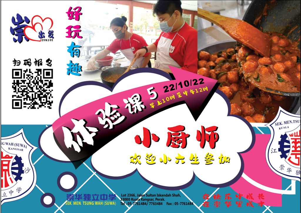 11 Oct 2022 | 【活动预告】欢迎小六生报名参加10月15日招生系列体验活动之餐饮班体验课