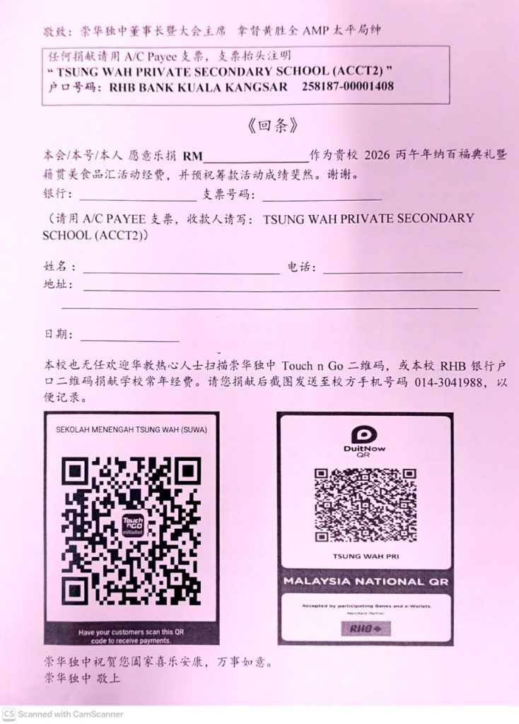 © 2026 Sekolah Menengah Tsung Wah (SUWA) 崇华独立中学