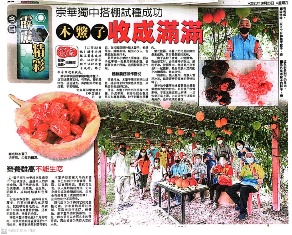 (江沙22日讯)继年头种植玉蜀黍成功后,江沙崇华独中试种木鳖子成功…点击此处,阅读更多详细内容